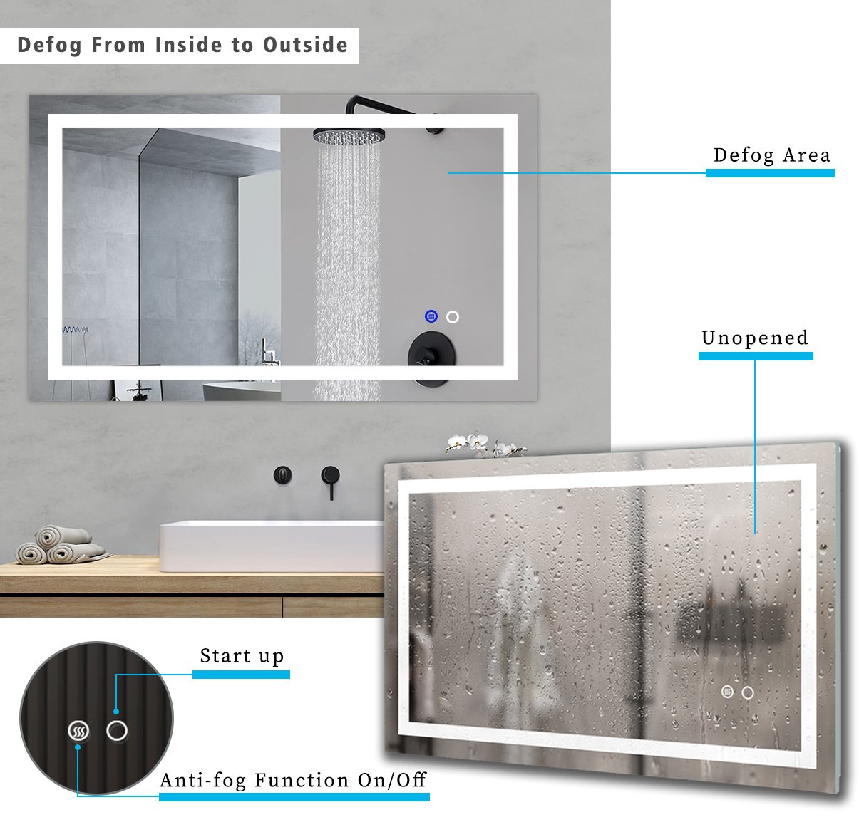 LED Mirror with Touch Buttons control; Anti-Fog LED bathroom Vanity Mirror