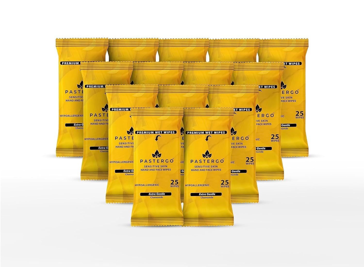 PASTERGO(Total 350) Hand & Face Wet Wipes for Sensitive Skin by Pastergo, Travel Wipes Case,14 Pack 350 Total Wipes - Made in EUROPE